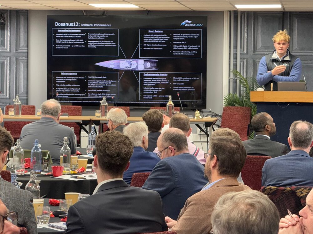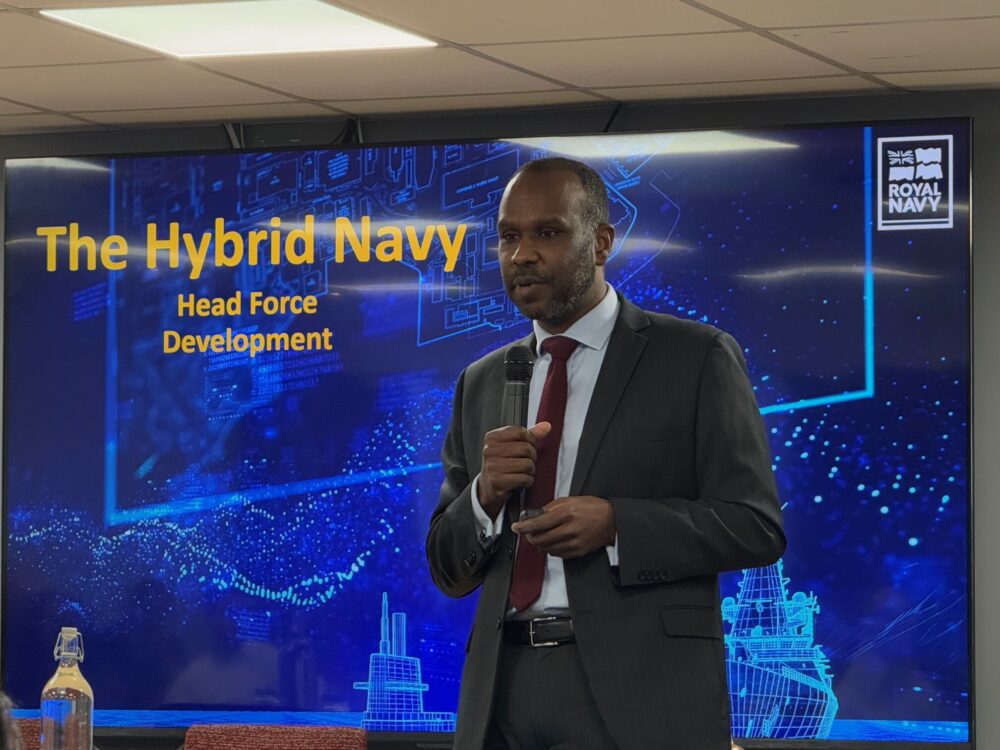 Our “Minimum Viable Warship” conference at Make UK‘s Engineer’s House in Bristol was opened by the S&T Working Group co-Chair Jake Rigby from BMT. The proceedings kicked off with an exceptional Keynote Address from Captain Mohayed Magzoub Royal Navy, Head of Force Development. He introduced the future Hybrid Navy as a “force mix that can deliver the navy’s outputs using disaggregated Sense, Decide and Effect across connected hosts,” describing it as having “a Common Combat Vessel at its heart with associated uncrewed capabilities.” He was followed by Professor David Andrews, who provided historical context and expounded the importance of exploring numerous solutions as we “shift the paradigm from designing warships to designing fleets.” This set the scene for an absorbing day of presentations and discussions from almost 100 delegates.